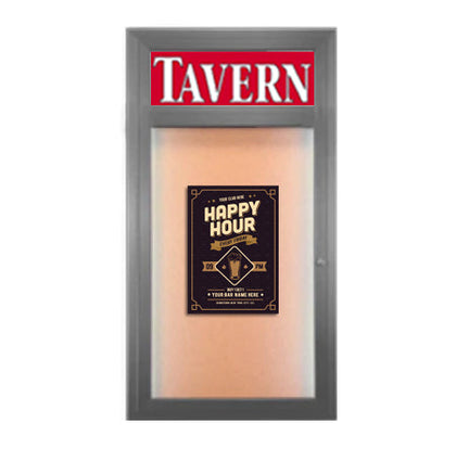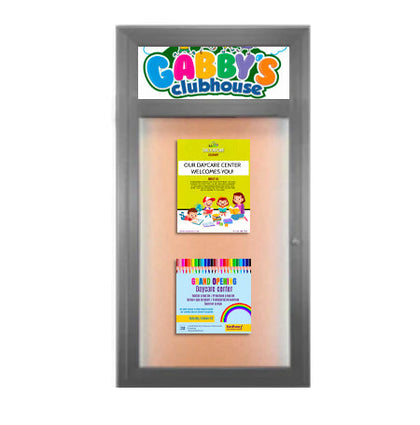 Outdoor LED Lighted Enclosed Bulletin Boards 19 x 24 with Header (Single Door)