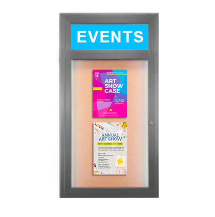 LED Illuminated Outdoor Enclosed Bulletin Cork Boards with Header - Single Door
