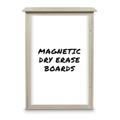 With a Magnetic White Dry Erase Board interior, 3 3/4 Inch Display Case Depth and maintenance-free, weather resistant construction, this 36x60 Outdoor Message Center with Porcelain Steel White Dry Erase Board is built to display and help protect your announcements, maps, posters, signage restaurant menus and other important printed materials while withstanding the outside elements.
