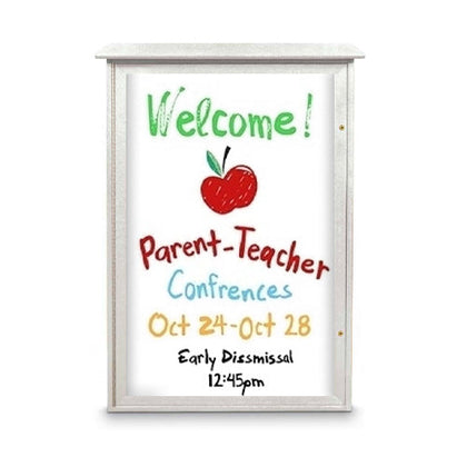 With a Magnetic White Dry Erase Board interior, 3 3/4 Inch Display Case Depth, and maintenance-free, weather-resistant construction, this 38x54 Outdoor Message Center with Porcelain Steel White Dry Erase Board is built to display and help protect your announcements, maps, posters, signage restaurant menus, and other important printed materials while withstanding the outside elements.